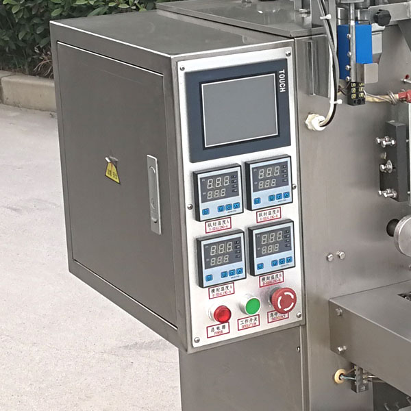 3、小袋調味粉包裝機全不銹鋼外飾,接觸物料部分為不銹鋼304材質,符合藥品GMP/食品QS規范要求。